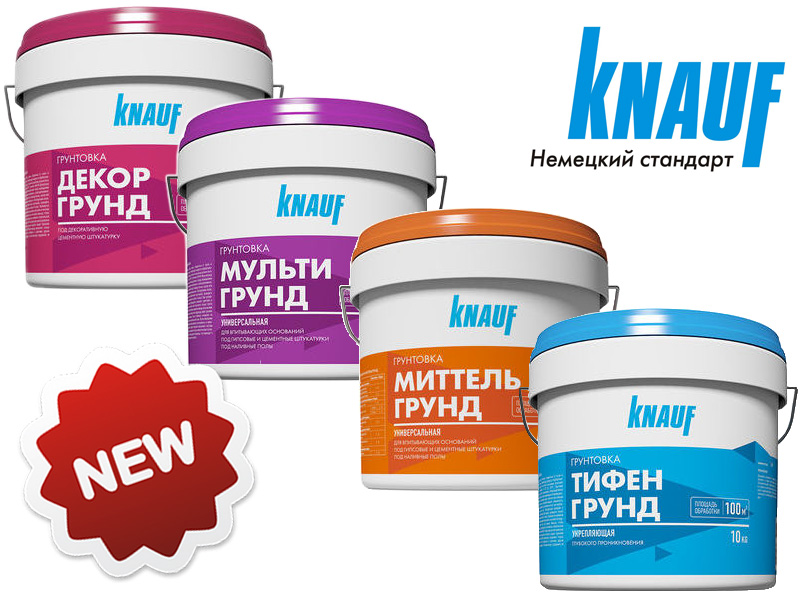 Im Produktkatalog des europäischen Herstellers Knauf finden Sie viele Kompositionen, die jeweils ihre individuellen Eigenschaften haben. Im Folgenden sind die beliebtesten Primer.