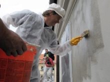 Der Primer wird in zwei Schichten aufgetragen. Es ist unmöglich, die zweite zu setzen, bis die erste trocknet. Dies ist besonders wichtig, um das nicht vollständig ausgebildete Gitter nicht zu brechen. Wenn die Basis zu glatt ist oder wenn Schaumkunststoff vorbereitet wird, wird manchmal Glasfasernetz verwendet, bevor die Grundierung aufgetragen wird. Seine Dichte sollte nicht groß sein, da es sonst die Grundierung erschweren könnte.