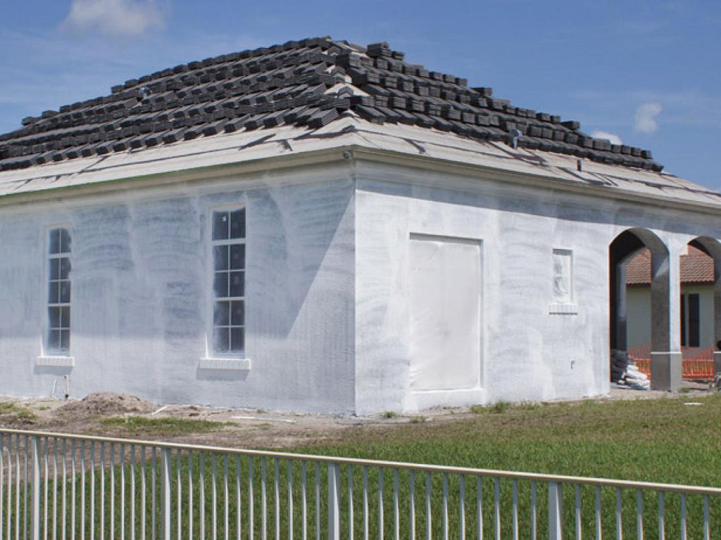 Wenn Sie dekorativen Putz anbringen möchten, tragen Sie eine Mischung aus Weiß auf.