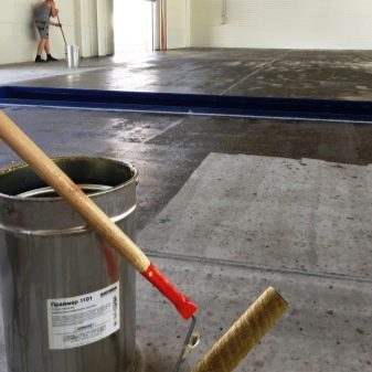 Manchmal kommt es vor, dass die Grundierung die Rolle einer Deckbeschichtung ohne die nachfolgende Verwendung von Farbe übernimmt. Diese Option wird in Garagen, Werkstätten und Wirtschaftsräumen verwendet. Sie müssen eine Lösung wählen, die die Betonbasis stärkt.