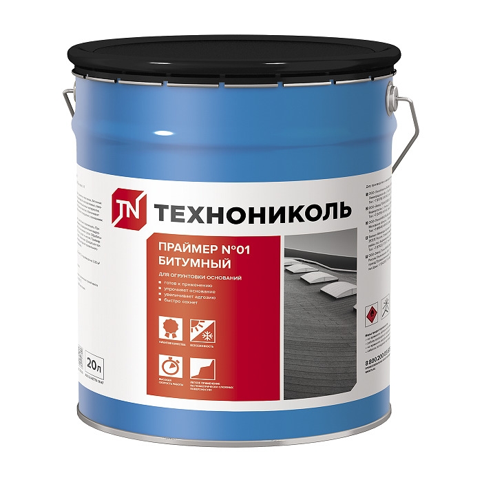 Die Grundierung ist eine Imprägnierung der Oberfläche, die die Basis stärkt, Rauheit entfernt und die Haftung erhöht. Dies ist ein tief eindringender Bitumenprimer. Es bereitet Beschichtungen für die anschließende Abdichtung vor.
