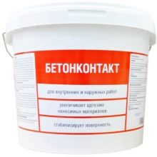 Wenn die Luft im Raum auf 25 Grad erhitzt wird, ist selbst eine Luftfeuchtigkeit von 65% kein Hindernis für die Arbeit, aber die Wand sollte ungefähr einen Tag nach dem letzten Schlag trocknen. Das Produkt gilt als vollständig gebrauchsfertig, und vor der Arbeit bleibt es nur übrig, die Zusammensetzung zu mischen. Um 1 m2 zu bedecken, müssen Sie 200-300 g "Betonokontakt" ausgeben.