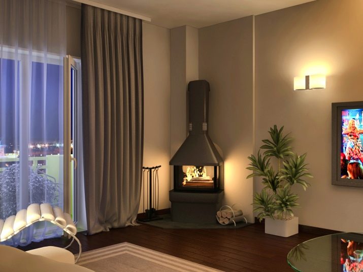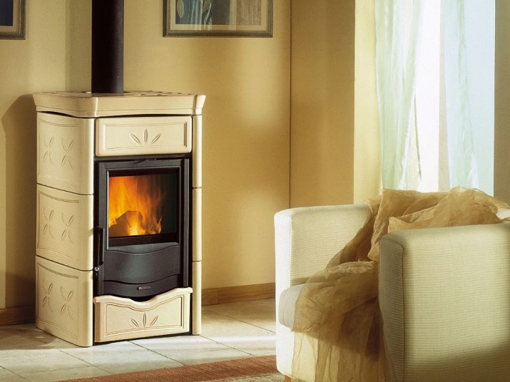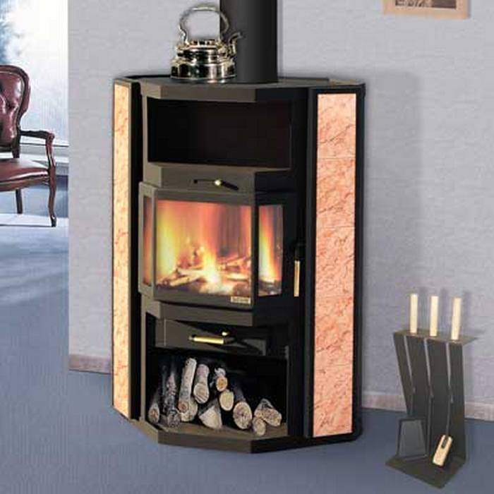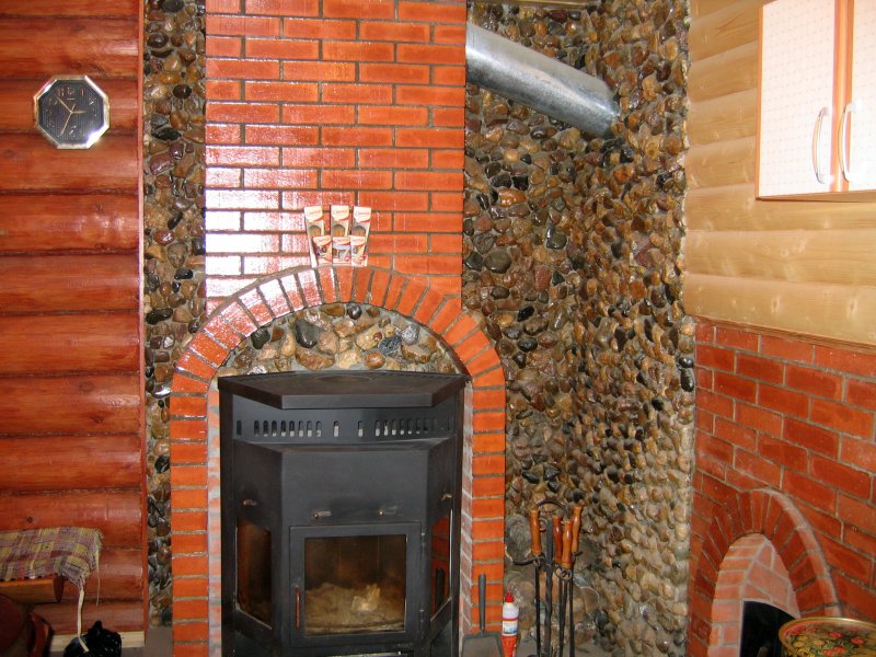 Hersteller von Öfen, Kaminen haben die Wünsche vieler Sommerbewohner berücksichtigt und einen Herd mit einem Herd mit zwei eingebauten Brennern entwickelt, auf dem Hausfrauen kochen oder Speisen erhitzen können. Ein solcher Ofen kann im Wohnzimmer aufgestellt werden, wodurch nicht nur eine Wärmequelle, sondern auch eine kleine Küchenzeile entsteht. In dieser Ecke wird noch Zubehör für den Kaminofen platziert, kunstvoll dekoriert und für die Pflege des Kamins notwendig. Und der Schürhaken und die Schaufel und der Pinsel und ein Korb für Brennholz mit ihren Ansichten fügen Komfort in den Raum hinzu.