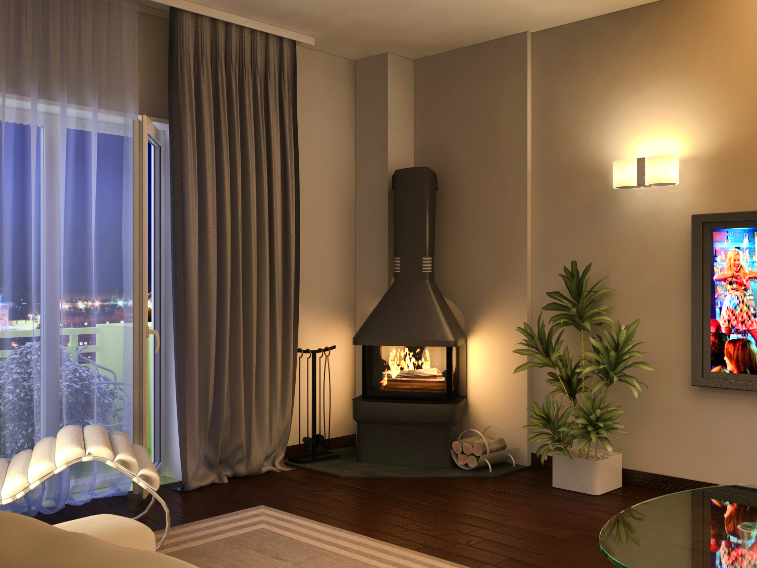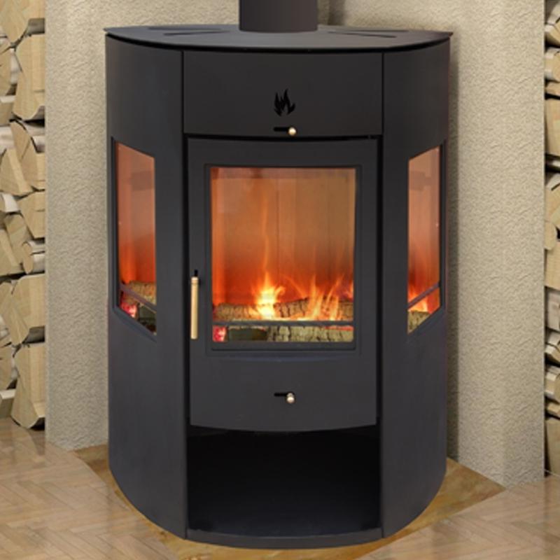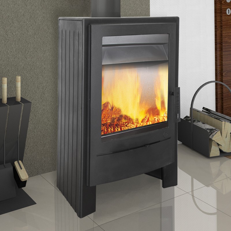 Die Feuerraumtür hat Glaskeramikglas, das Temperaturen von bis zu 750 ° C standhalten kann. und mit Glasfaserschnur versiegelt. Kamin mit Schamotte-Fliesen ausgekleidet. Der Körper ist mit einer schönen hitzebeständigen Farbe bedeckt.
