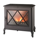 Chamane Ofen Design ist in High-Tech-Stil gemacht.Es hat eine geometrische Form eines Trapezes. Dieser Ofen ist komplett aus Gusseisen gefertigt, aber die Designer von Invict haben dieses Material perfekt in einen minimalistischen Stil integriert. Durch ein großes Trapezglas öffnet sich ein herrlicher Überblick über die Flamme. Trotz seiner geringen Größe erwärmt es sich auf 320 m3.