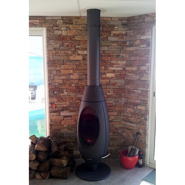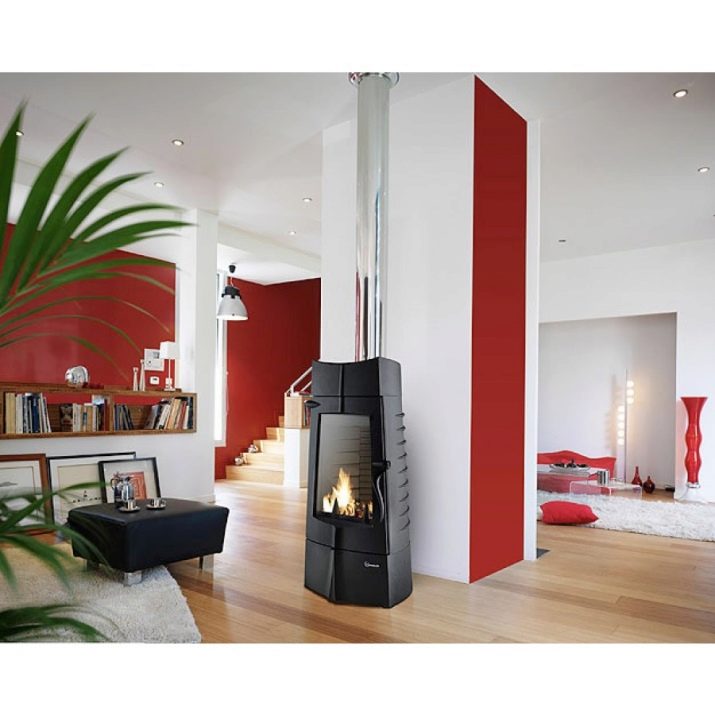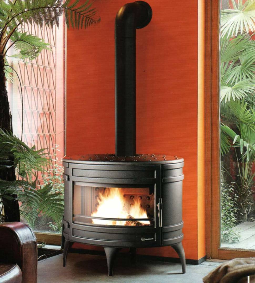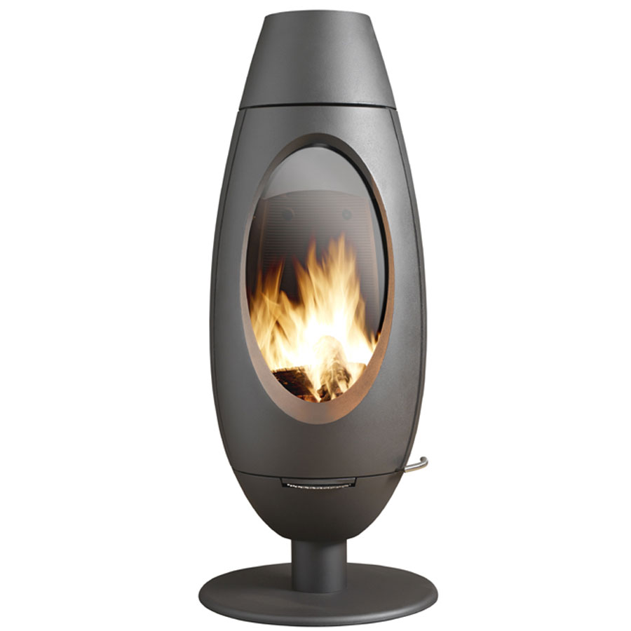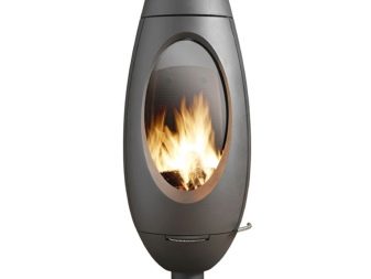 Der Designer des Ofens Ove, als es erstellt wurde, wurde von einem Glas Wein inspiriert. Infolgedessen erschien das einzigartige Aussehen dieses Ofens. Die ovale Form auf einem dünnen Bein und muss ein Glas Wein nehmen und in der Nähe des Kamins in einer romantischen Umgebung sitzen. Dieser Ofen wird einen Raum von 200 Kubikmetern erhitzen.