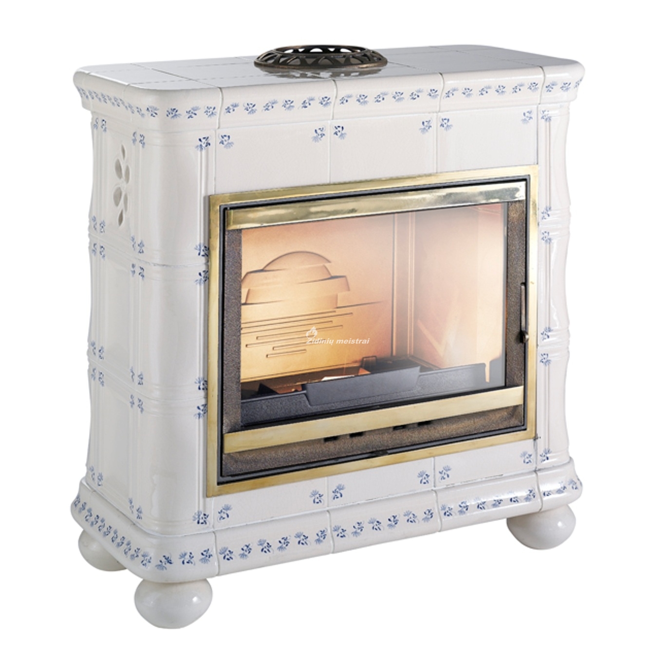 Der Boheme-Ofen ist eine Rückkehr in das 19. Jahrhundert. Perfekte Passform im Bohemian Boudoir.Draußen ist es mit Keramik mit blauer Farbe ausgekleidet. Ein wenig teuer, aber ihr Aussehen ist es wert. Heizt bis zu 224 m2.