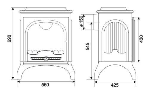 Ein weiterer Ofen für ein klassisches Interieur ist Sevilla. Großes gewölbtes Schauglas, Standardform auf runden Beinen - dieser Ofen kann auf Wunsch in jedem Interieur beschriftet werden, besonders da er in drei Farben hergestellt wird. Es wird sich auf 400 Kubikmeter aufheizen.