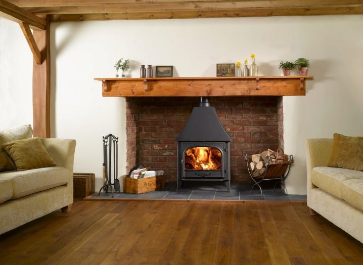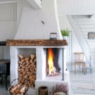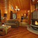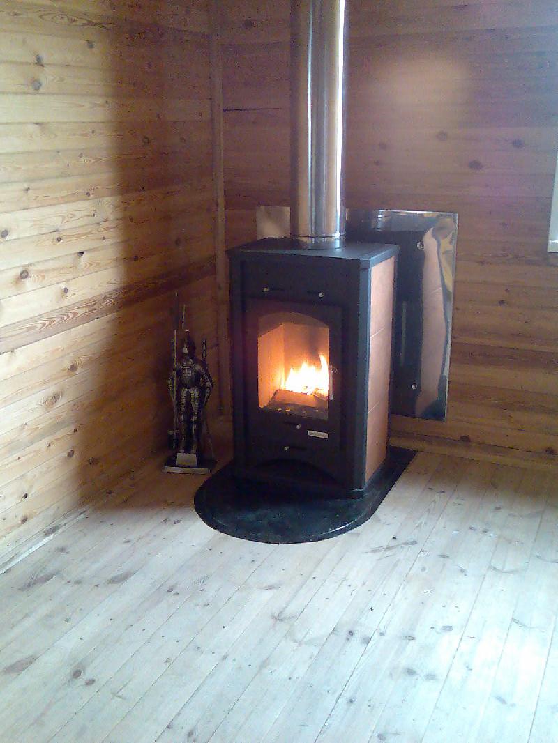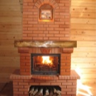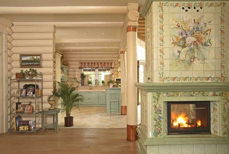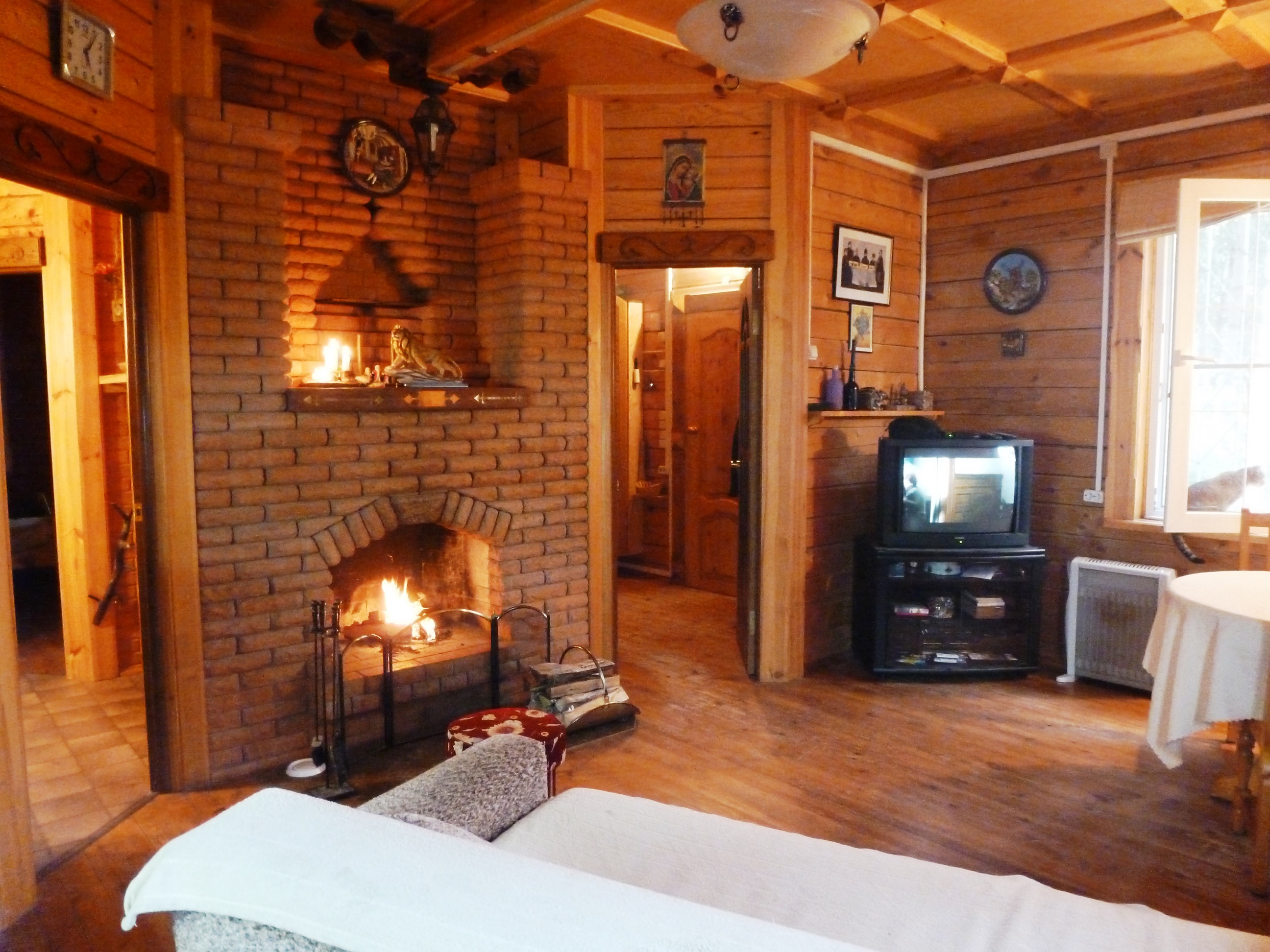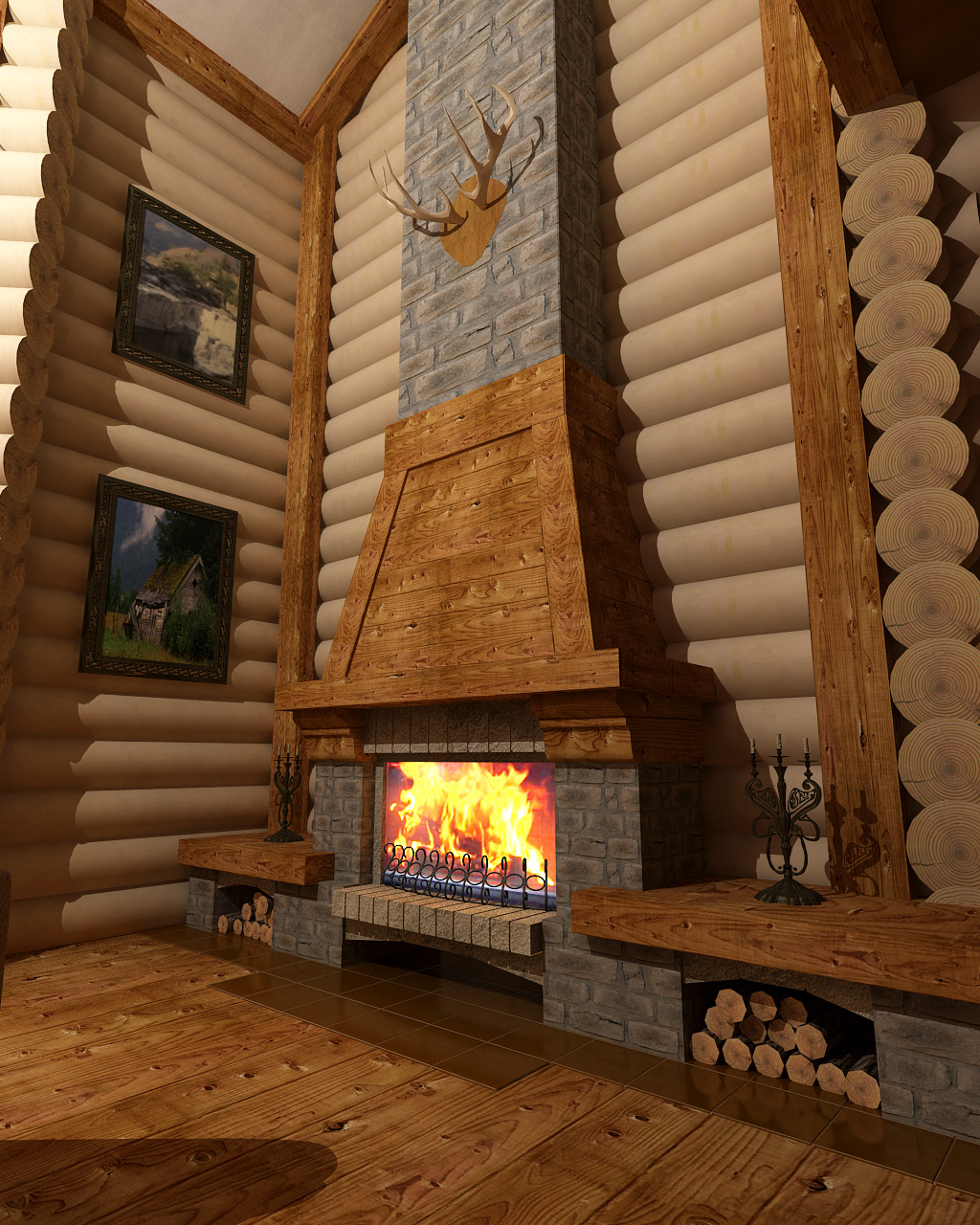 - Dekorativer Kamin fügt sich harmonisch in jedes Interieur eines Holzhauses ein.