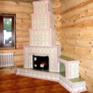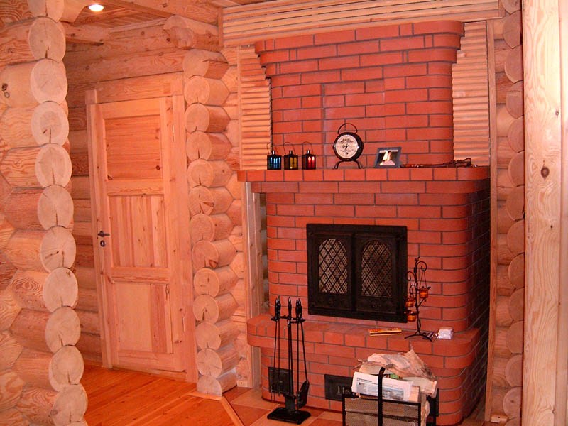 - Ziegelstein. Ziegelheizungen sind eine klassische Version des Kamins in einem Holzhaus. Brick Tiling erfordert Geschicklichkeit. Schlechte Konstruktion wird nicht funktionstüchtig und unsicher sein.