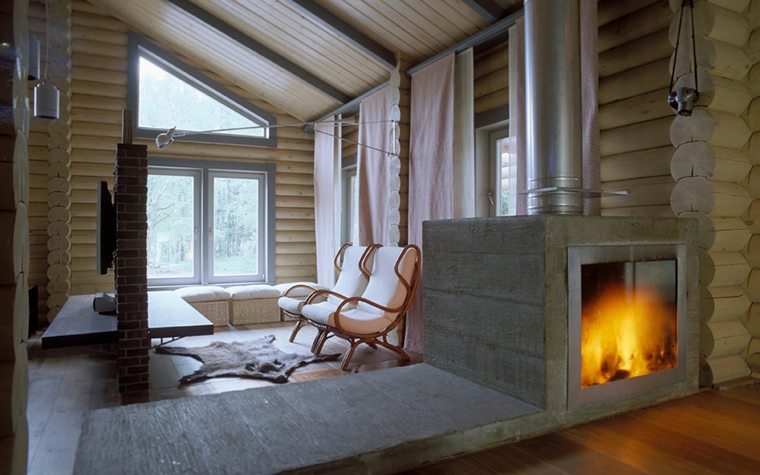 Leichter Kamin - ein besonderes Projekt für ein Holzhaus. Es hat eine offene Feuerstelle und geringes Gewicht.