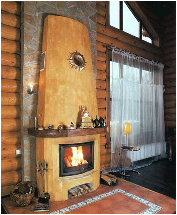 Dieser Herd wird warm und schafft Komfort um. Holzkonstruktionen sind umweltfreundlich, beeinträchtigen nicht die Umwelt, erfordern jedoch eine sorgfältige und durchdachte Installation bis ins kleinste Detail.