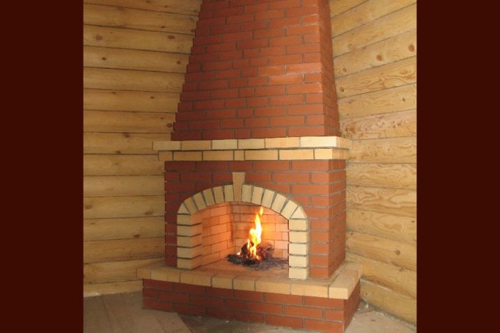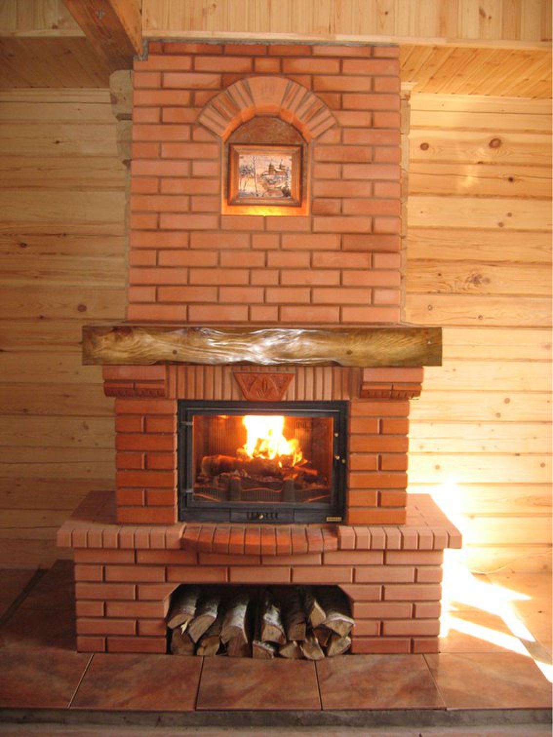 In einem Holzhaus ist es ratsam, Ziegel als Material zu verwenden.