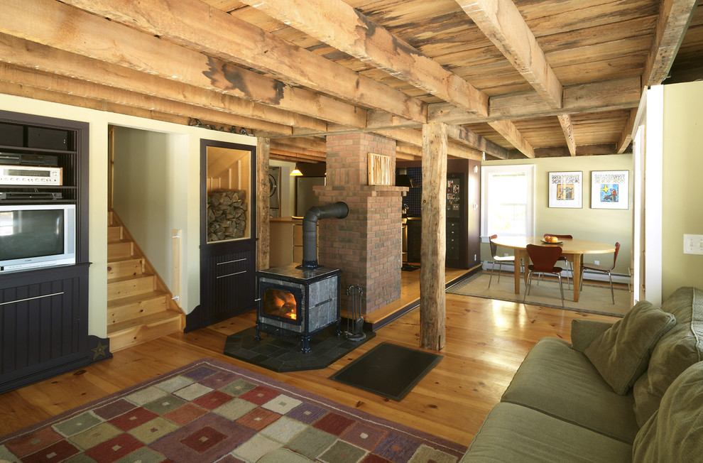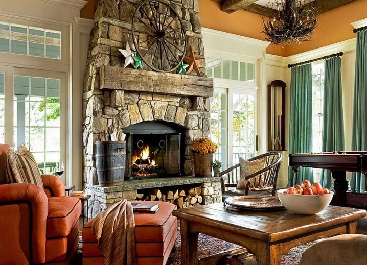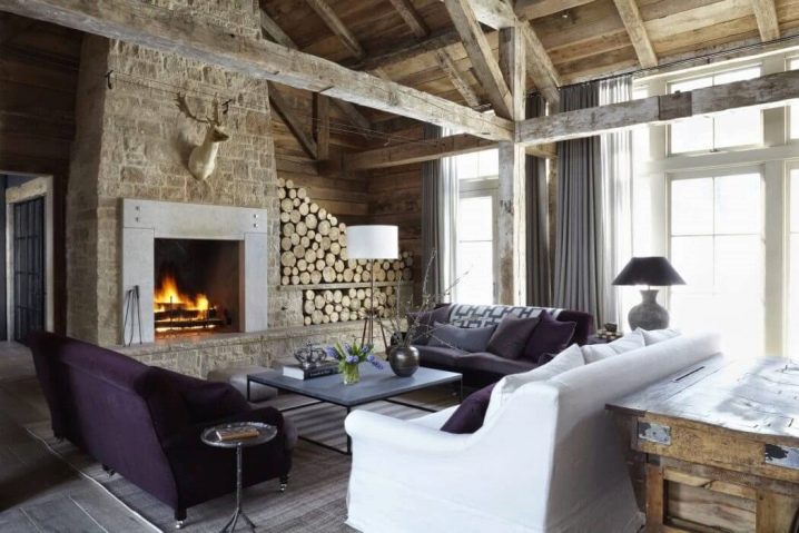 Wenn in einem privaten Holzhaus ein städtebauliches Design entstehen soll, ergänzen Sie es mit einem echten Kamin. Es wird nicht nur ein ästhetisches Element, sondern auch voll funktionsfähig sein. Wenn Sie eine Reise ins Land machen - nicht nur eine Notwendigkeit, sondern eine gute Erholung, sollten Sie an einen Kaminofen denken, der zum hellen Akzent eines großen Wohnzimmers wird. Der Ofen kann das ganze Haus heizen, wenn es klein ist.