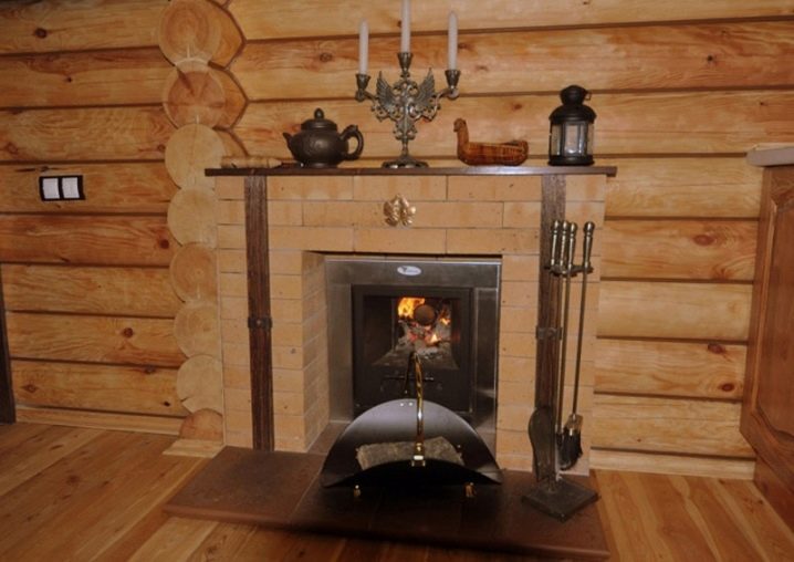 - Jeder Kamin in einem Holzhaus benötigt einen Schutzschild, der verhindert, dass Funken aus dem Portal fallen.
