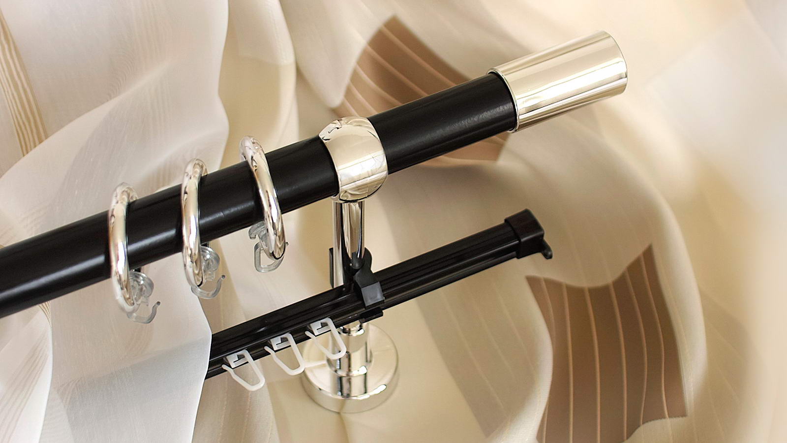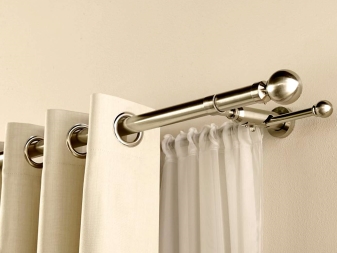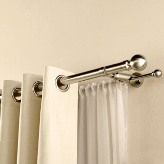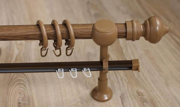 - Direkt doppelte Gesimskonsole. Es kann zwei Bars, zwei Profile und so weiter sein. Es gibt auch kombinierte Typen, zum Beispiel einen Rundstab für schwere Vorhänge und eine Profilführung für Tüll.