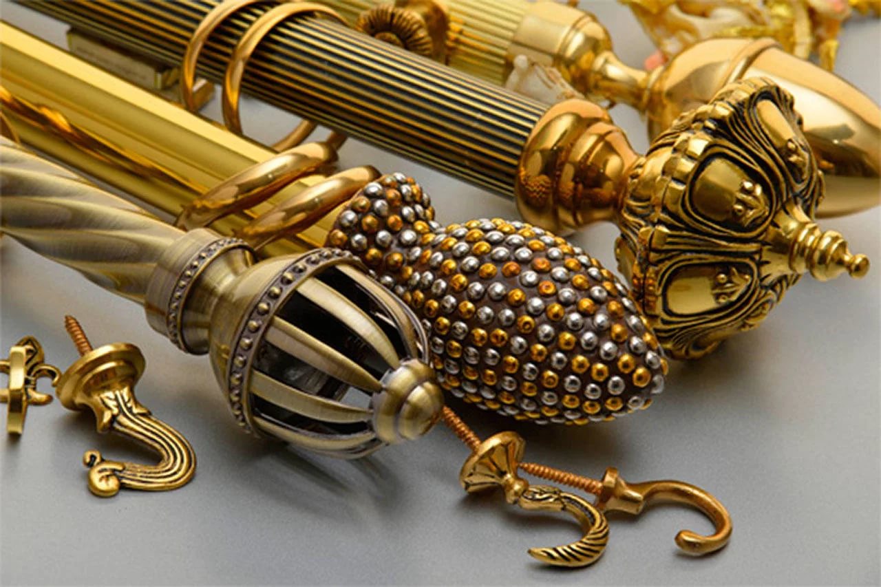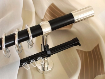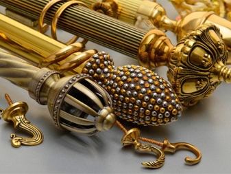 Und hier Vorhangstangen aus Metall Wird denjenigen passen, die schwere massive Vorhänge in einem Interieur verwenden möchten. Eisen Traufen halten sehr gut auf Gewicht.