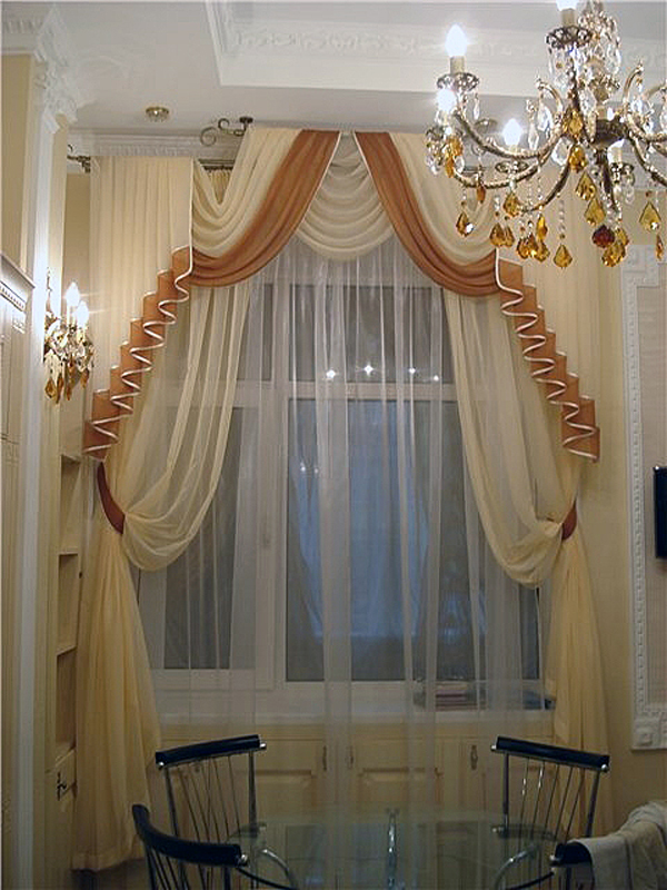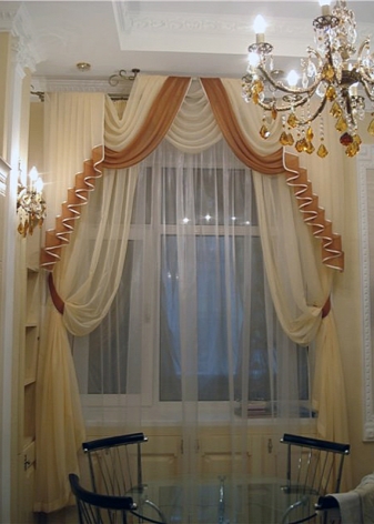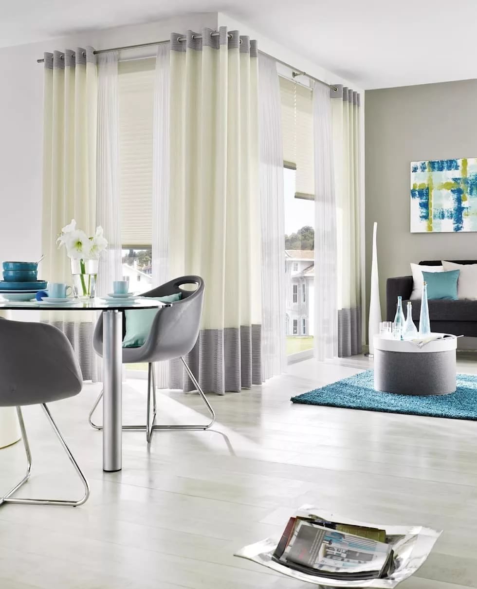 Runde Gesimse können ein, zwei oder drei Reihen enthalten, mit denen Sie Gardinen und Vorhänge kombinieren können.