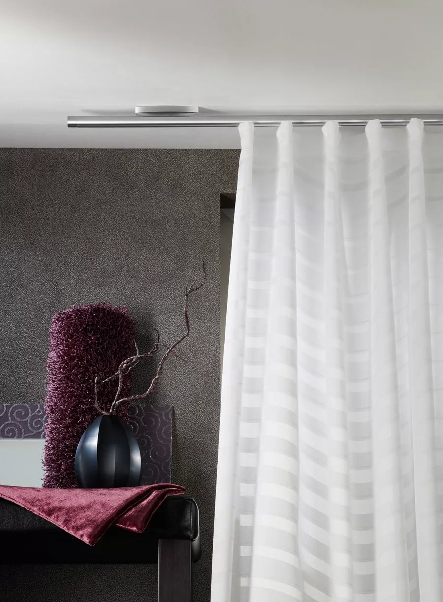- Metall Flexible Gesimse - haben die Form von Aluminiumprofilen mit Rollen, die die Vorhänge halten.Dieses Profil kann ohne Verwendung spezieller Werkzeuge gebogen werden;