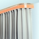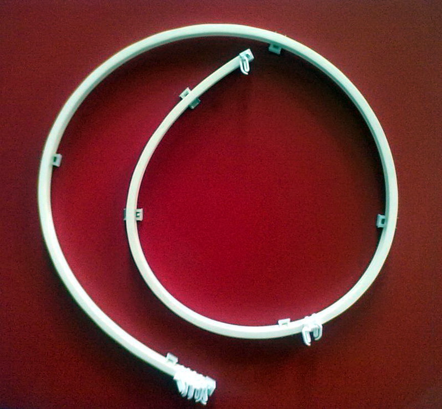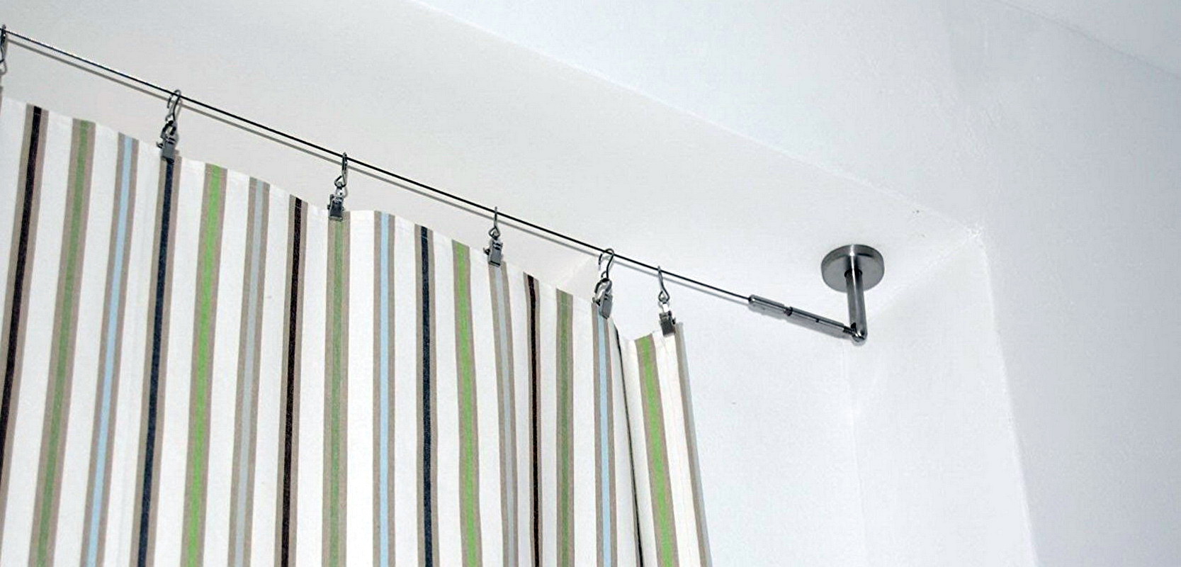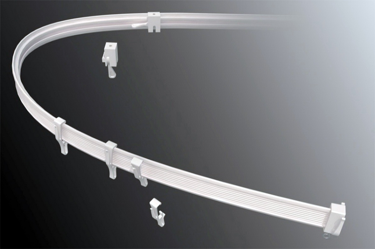 Flexible Vorhangschienen benötigen nur Haken für Vorhänge und Druckknöpfe für die Befestigung an der Decke.