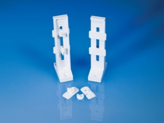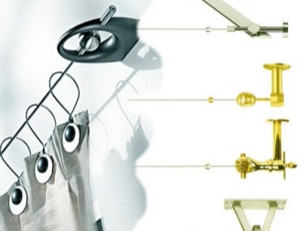 Metall Vorhangstangen sind die anspruchsvollsten bei der Installation. Für sie sollten Sie eine Klammer wählen, d. H. Eine spezielle Unterstützung zum Aufhängen. Es ist zu beachten, dass nicht jede Halterung für die Installation an der Decke geeignet ist, dieser Punkt sollte speziell mit dem Verkäufer in der Kabine besprochen werden. Bei der Auswahl einer Halterung ist es wichtig, das Gewicht der Vorhänge zu berücksichtigen. Die Klammern können einfach oder doppelt sein, in letzterem Fall können zwei Gesimse gleichzeitig aufgelegt werden, was zum Anbringen von Vorhängen und Tüll günstig ist.
