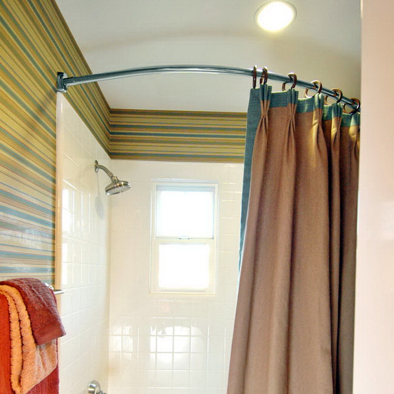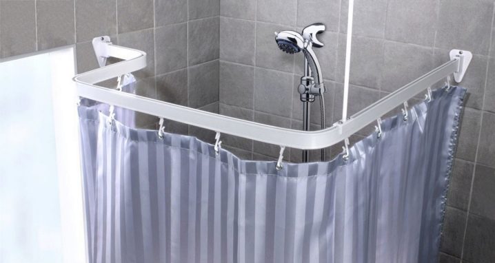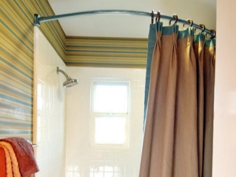 - Es sieht sehr vorteilhaft Metal Traufe auf Kleiderbügeln im Badezimmer montiert. Es wird in strikter Übereinstimmung mit den Konturen des Badezimmers installiert, an dem ein Vorhang aufgehängt wird, wodurch die Oberfläche der Wände und der Boden vor Spritzern geschützt werden.