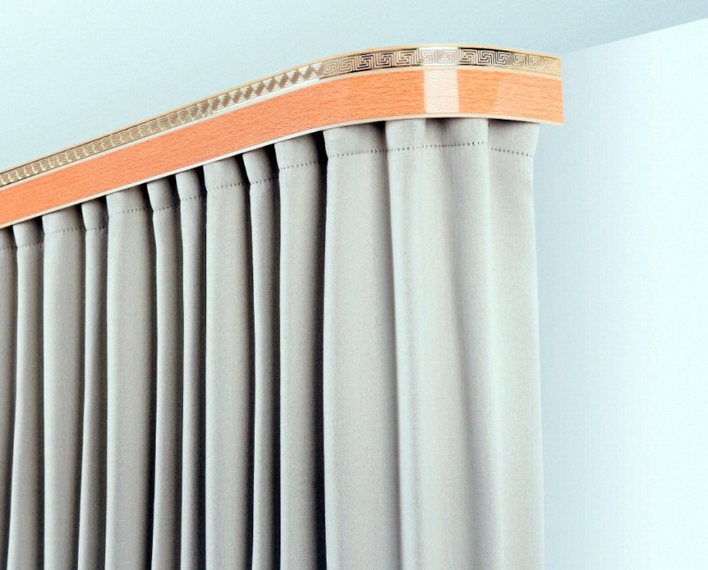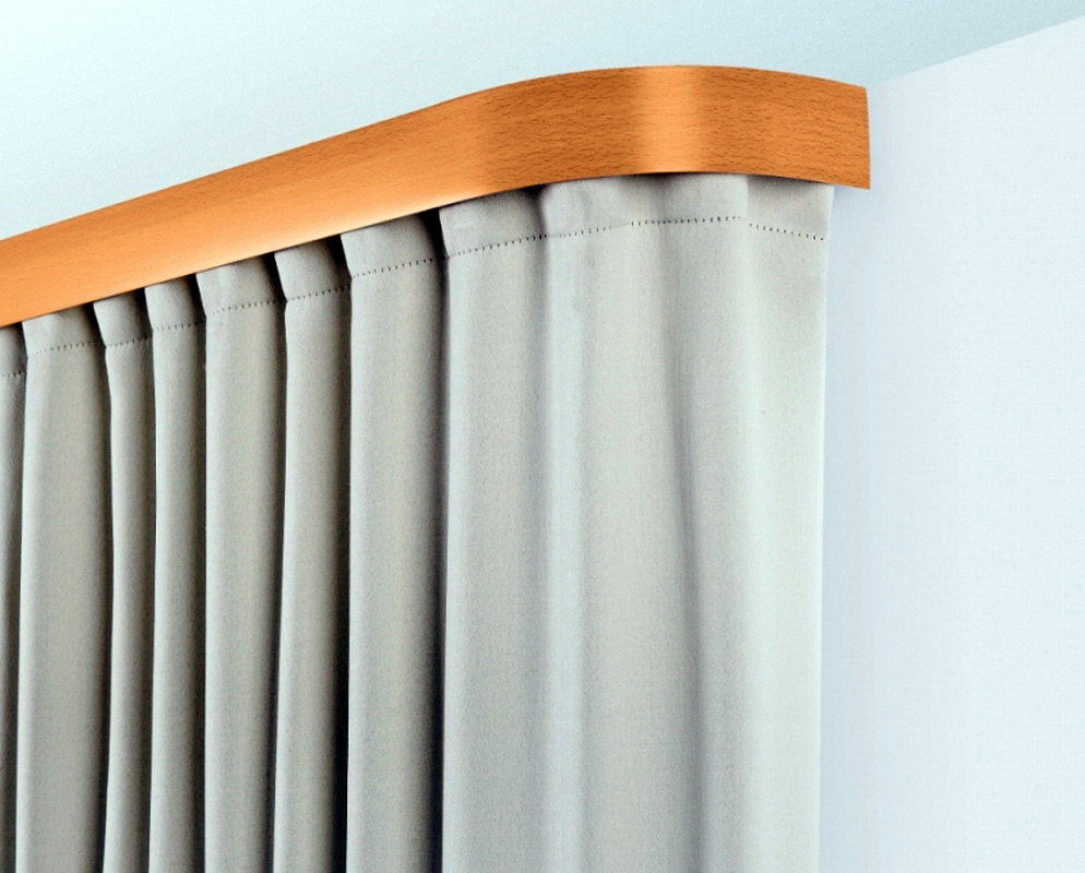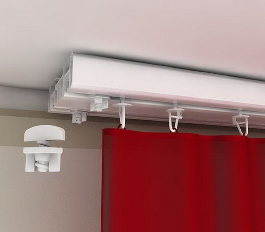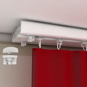 Da die Vorhänge sowohl gleitend als auch anhebend sein können, benötigen sie verschiedene Arten von Deckenleisten. Zum Heben von Vorhängen ist die Auswahl an Traufen klein. Diese wird üblicherweise mit einem Hebemechanismus, der aus Aluminium oder Kunststoff besteht, an der Deckenschiene befestigt. Eine solche Struktur kann gerade oder flexibel sein und beispielsweise für ein Erkerfenster geeignet sein.