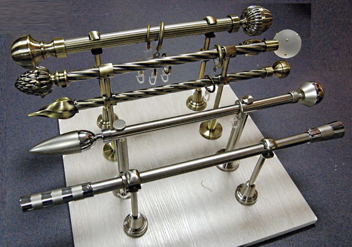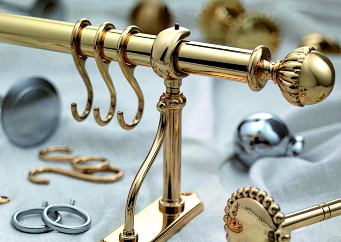 Sehr beliebt sind auch Metallvorhangstangen in Form einer Stange oder eines Stabes. In der Regel sind sie vielseitig und sowohl für Decken als auch für Wände geeignet.Die Fixierung erfolgt durch die Klammern, in denen die Stäbe selbst befestigt sind. Bei Wänden und Decken kommen verschiedene Arten von Konsolen zum Einsatz, was den Gesamteindruck jedoch nicht verändert: Solche Modelle wirken immer sehr elegant und erregen Aufmerksamkeit.