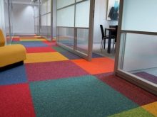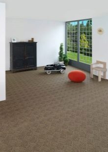 - Erhältlich in Rollen, was erlaubt, mit einer gleichmäßigen Abdeckung ohne Verbindungsnähte den Raum der großen Fläche und in Form von getrennten Platten zu bedecken. Dies ermöglicht Ihnen, nur das abgenutzte Teil zu ersetzen, ohne den Rest der Beschichtung zu berühren. Und dank der Gummibasis spart Teppich keine statische Elektrizität;