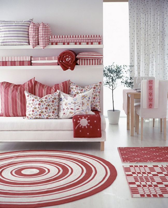 - Baumwolle Dieses Material ist das weichste und angenehmste in der Berührung. Es ist Baumwolle, die hypoallergen ist und keine statische Elektrizität akkumuliert. Im Aussehen wirken diese Modelle wie von Hand gewebt, was die Atmosphäre im Raum gemütlicher und wohnlicher macht.