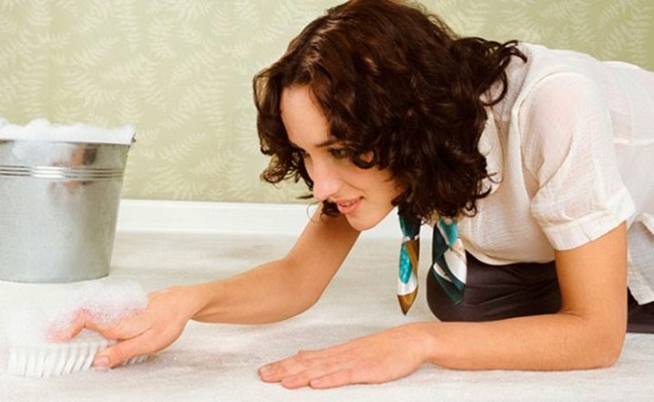 - Anstelle von Reinigungsmitteln ist es gut, Sägespäne oder Steinsalz zu verwenden. Sie werden in einer gleichmäßigen Schicht auf dem Teppich verstreut, können Schmutz und Feuchtigkeit aufnehmen und dann mit einem Staubsauger oder einer Bürste gereinigt werden.