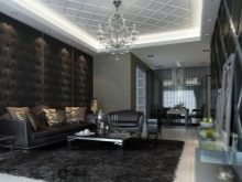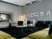 Klassische Teppiche werden selten in einer rein schwarzen Version hergestellt. Normalerweise wird Schwarz durch rote, goldene Muster ergänzt. Dunkler Teppich absorbiert den Raum, daher ist es am besten, ihn in einem großen Raum zu platzieren. An sich sollte das Modell klein oder mittelgroß sein, nicht der gesamte Boden.