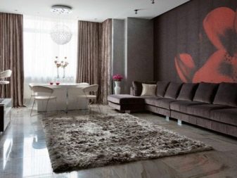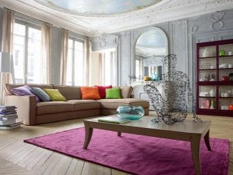 Teppich muss mit den im Raum verwendeten Grundfarben kombiniert werden. Es kann sowohl der Hauptpunkt im Raum als auch der Hintergrund sein, auf dem andere Einrichtungsgegenstände heller spielen. Jede Teppichfarbe hat ihre eigenen Eigenschaften.