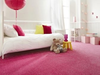 Dieser Farbton gilt zu Recht als mädchenhaft, daher wird dieser Teppich normalerweise in Kinderzimmern verlegt. Sie können es im Schlafzimmer verwenden, um den Raum einzuteilen und die Boudoir-Gastgeberin hervorzuheben.