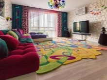 Wenn Sie Ihrer Wohnung ein ungewöhnliches Element hinzufügen möchten, das den Innenraum vervollständigt, aber gleichzeitig auch ein zentraler Teil wird, suchen Sie nach einem originalen Teppich oder bestellen Sie ein Produkt.