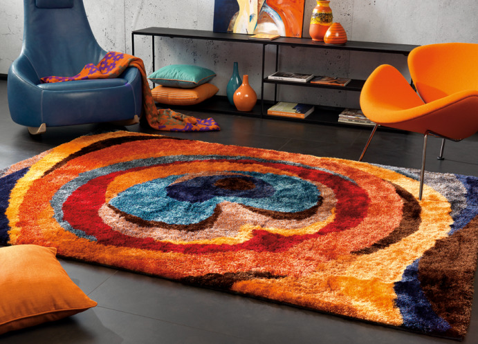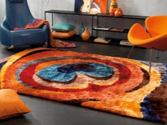 - Fett Farben. Unter den Produkten des Autors finden Sie sehr prominente Kopien. Hellorange oder kohlschwarze Produkte sind nicht verboten, im Gegenteil, sie gewinnen schnell an Popularität. Es gibt Teppiche, auf denen eine Zeichnung imitiert künstlerische Farben. Es sieht sehr schön aus.