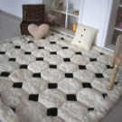 - Ziegenfelle Original-Teppichmodelle können erstellt werden, wenn sie in Patchwork-Technologie erstellt wurden (wenn mehrere separate Elemente zu einer festen Leinwand zusammengenäht werden).