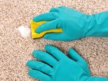 - Wenn es eine starke Verschmutzung oder Flecken gibt, die schwer zu entfernen sind, ist es besser, ein solches Produkt in einen spezialisierten Trockenreiniger zu tragen, der die Reinigung des Teppichs nur Fachleuten anvertraut. Unsachgemäße Reinigung solcher Verunreinigungen zu Hause kann die Haut des Tieres ruinieren.