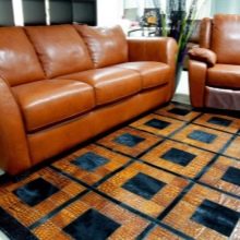 - Künstliches oder echtes Leder wird in der Herstellung von Teppichen verwendet werden, abhängig von Ihren Finanzen, sowie die Anwesenheit oder Abwesenheit von Allergie gegen Tierfell.