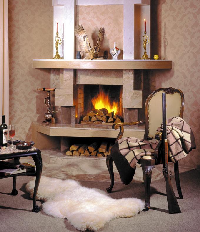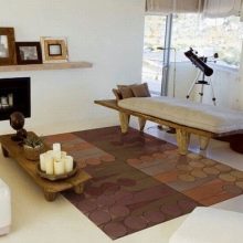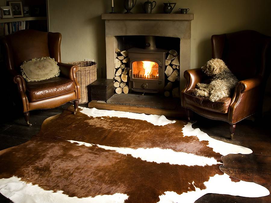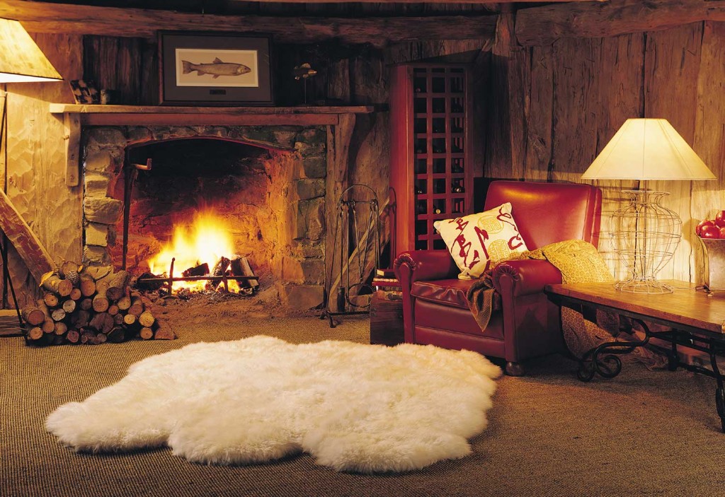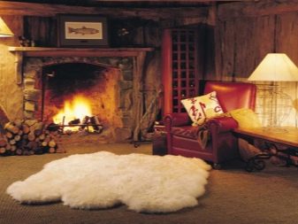 - ganz in der Nähe des Kamins (besonders, wenn es zum Heizen des Raumes verwendet wird, und nicht für dekorative Zwecke), ist es auch nicht empfehlenswert, einen Teppich aus natürlichem Leder und Pelz zu legen, da übermäßige Hitze das Trocknen des Produktes provoziert;