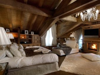 - An Anhänger Landhausstil Es lohnt sich, die Produkte von Schaffell zu betrachten. Sie werden gut auf dem Boden aussehen, wenn Sie sie neben einem Bett aus Naturholz platzieren.