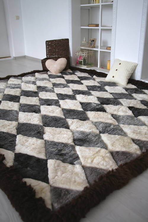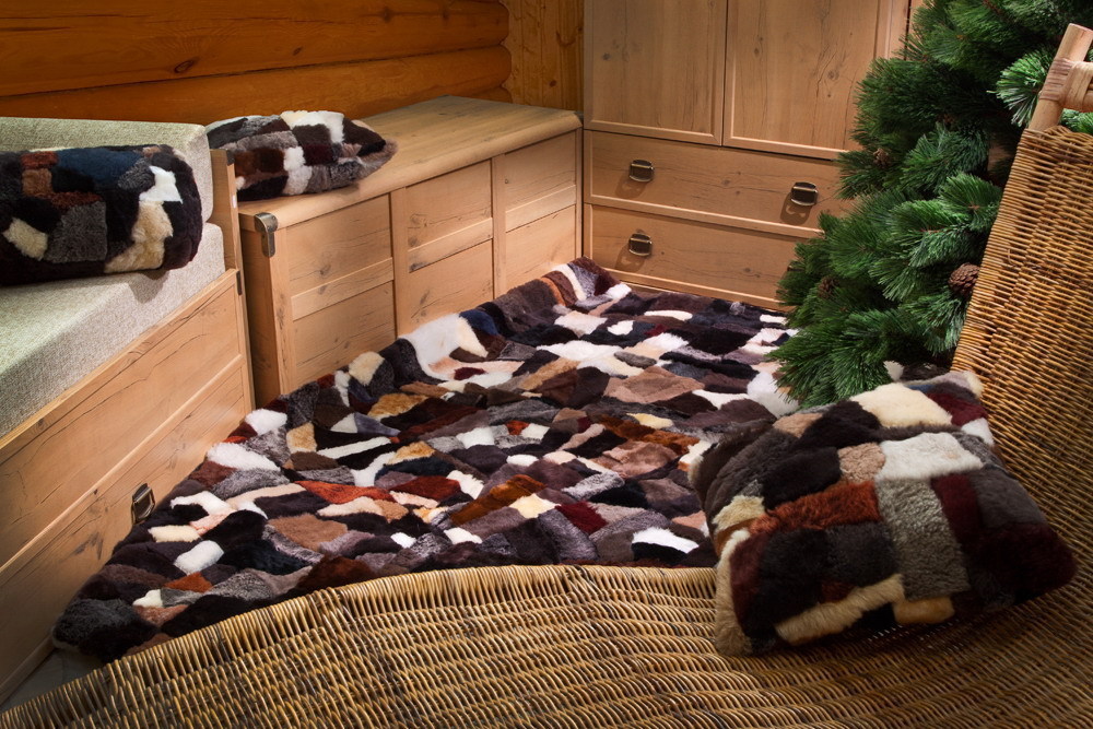 - Zum Schlafzimmer perfektes Schaffell, Alpaka Shurka oder eine Variante des Mutons;