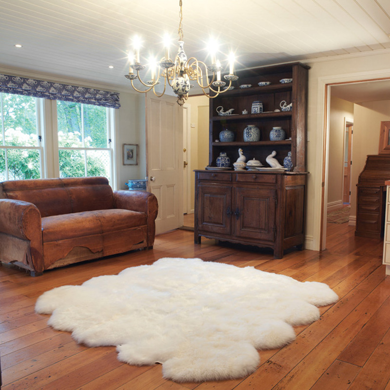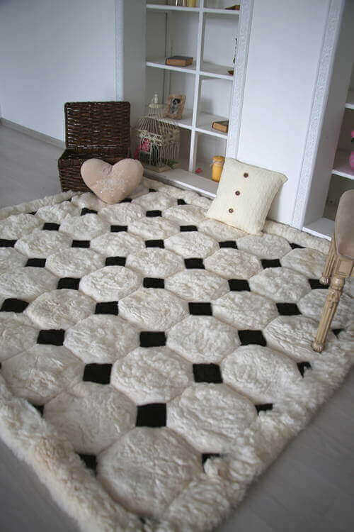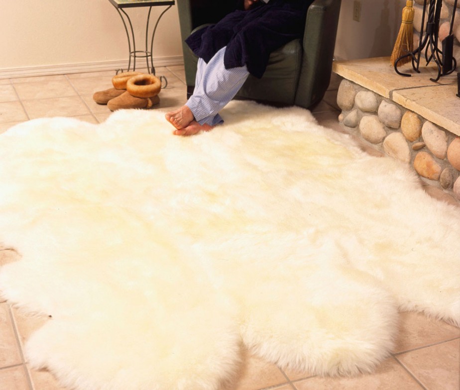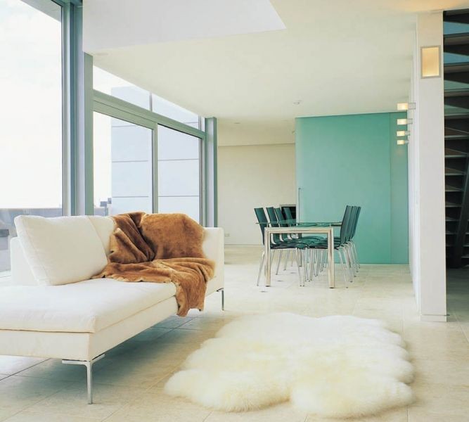 - Aus Schaffell Es wird eine ausgezeichnete Anschaffung für diejenigen sein, die natürlichen Teppich kaufen möchten, aber kein großes Budget für einen solchen Kauf haben. Solch ein Produkt ist vielseitig und sieht in fast jedem Raum gut aus. Darüber hinaus zeichnen sich solche Teppiche aus Schafshaut oder Muton durch hypoallergene und heilende Eigenschaften aus. Sie sind sehr weich und angenehm im Griff, wirken wohltuend auf die Haut eines Menschen.
