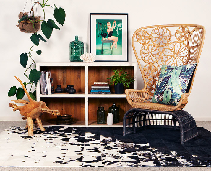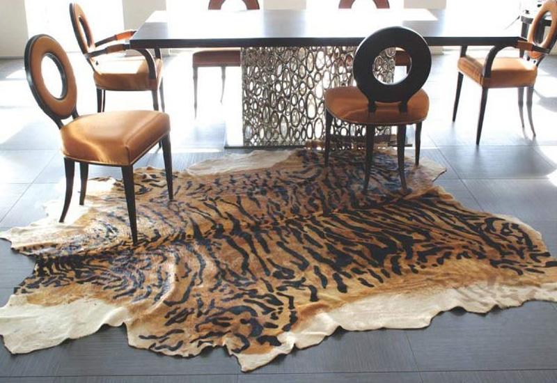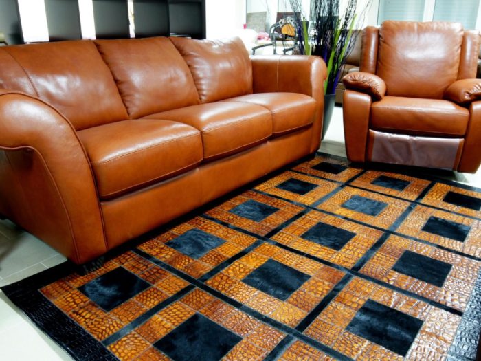 - Von der Kuh - Eine solche Teppichhaut hat einen recht vernünftigen Wert, besonders im Vergleich zu anderen exklusiven und seltenen Exemplaren. Darüber hinaus hat Kuhhaut Eigenschaften wie Festigkeit und Haltbarkeit und hat auch die Fähigkeit, das Produkt in einem anderen Farbton zu streichen, um die Farbe eines bestimmten exotischen Tieres nachzuahmen.
