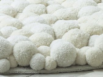 Der weiche flauschige Teppich von Pompons ist nicht nur ein hübsches Produkt, das gute Laune erzeugt. Dies ist eine praktische Sache, die ihre Besitzer vor kalten Böden schützt. Eine solche Abdeckung wird besonders im Kinderzimmer erfolgreich sein. Zur Überraschung vieler sammelt eine solche Matte so viel Staub wie Teppich aus anderen Materialien, nicht mehr und nicht weniger. Und um unangenehme Verschmutzungen zu beseitigen, waschen Sie einfach den Teppich in der Waschmaschine.