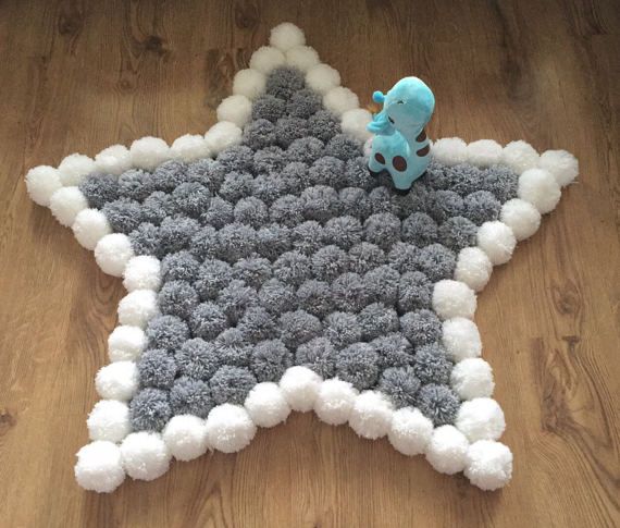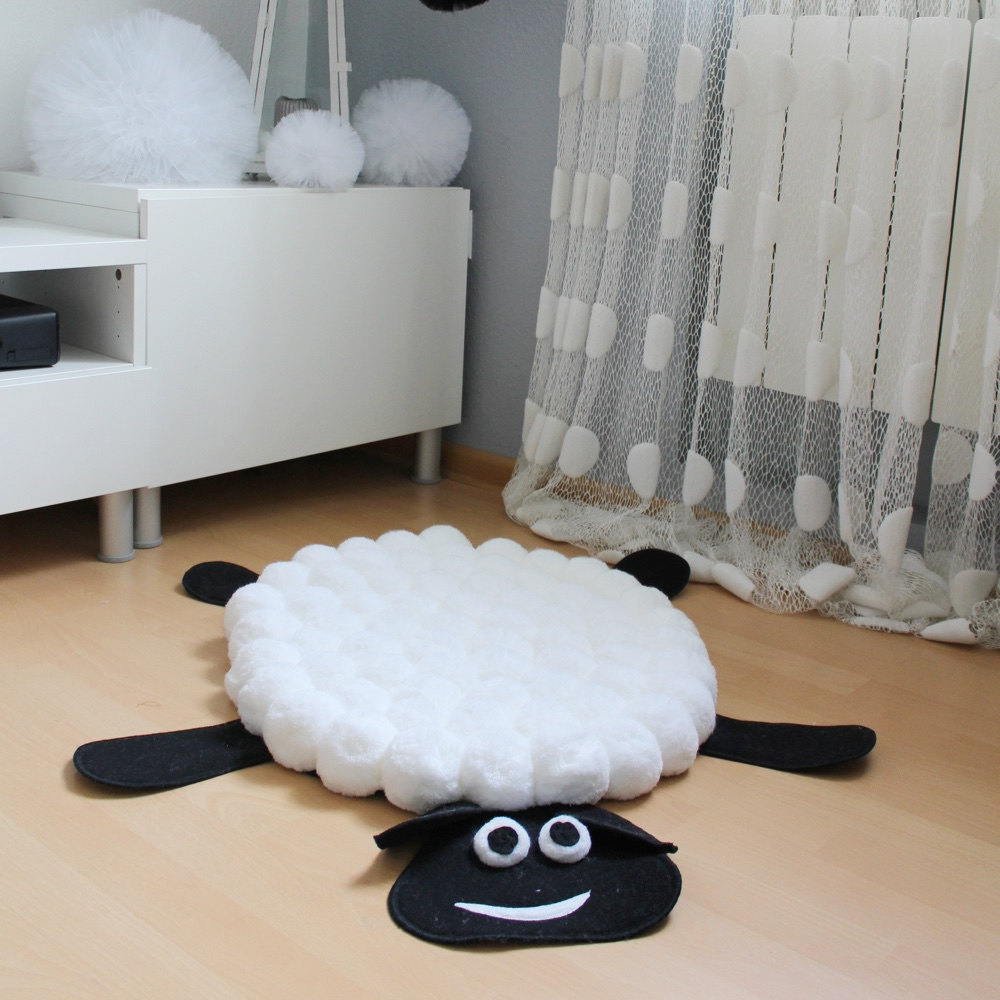 Helle Pastelle aus mittelgroßen Pompons werden im Kinderzimmer perfekt serviert. Weiche Bettwäsche ist sowohl ein Spielzeug als auch ein bequemer Sitz.Erwachsene können ruhig das Spiel ihrer Lieblingskinder beobachten, ohne sich Sorgen machen zu müssen, dass sich das Kind auf dem kalten Boden erkältet.