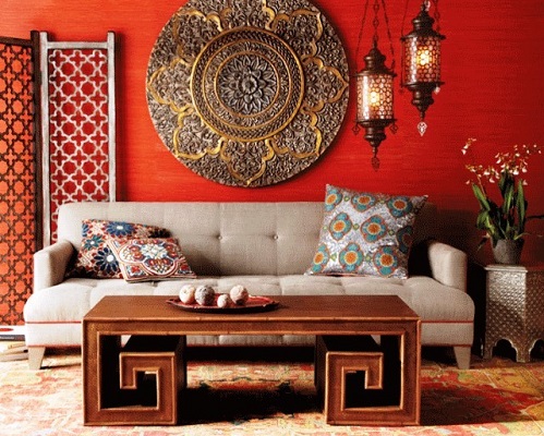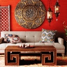 Der Teppich kann als dekoratives Element nicht nur auf dem Boden, sondern auch an der Wand platziert werden. Solch eine Entscheidung kann das Interieur, das im ethnischen oder orientalischen Stil gemacht ist, perfekt unterstreichen. Aber der Palast sollte streng auf dem Boden platziert werden.