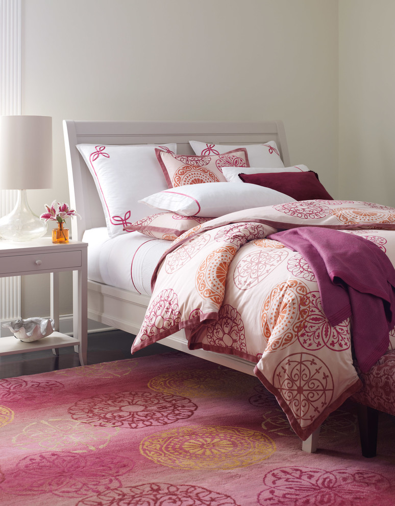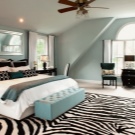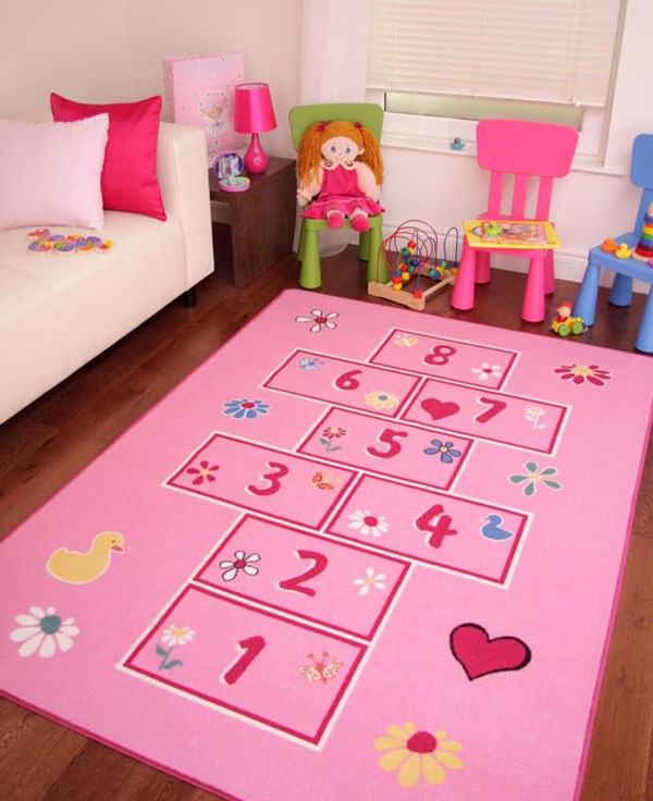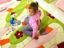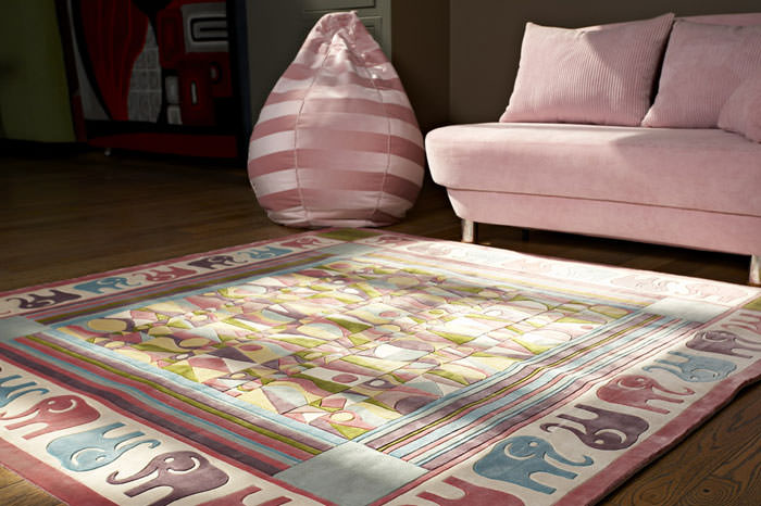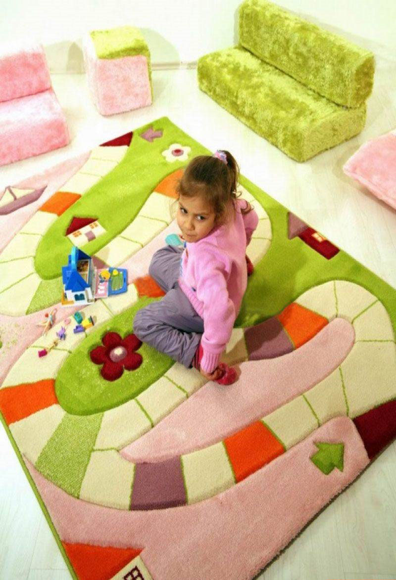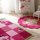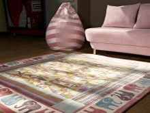 Neben der Farbe des Raumes können Farbe und Design des Teppichs durch den Zweck des Raumes beeinflusst werden. Tiefere dunkle Farben wie Blau und Violett sind für das Schlafzimmer geeignet. Maroon-Modelle passen auch in das klassische Interieur des Schlafzimmers. Wählen Sie einen Teppich für ein Kinderzimmer, können Sie auf die Optionen mit Streifen oder mit Mustern, zum Beispiel mit Sternen oder Mosaik achten. Unnötig dunkle Farbe ist besser nicht zu nehmen, viel geeigneter wäre blau, grün oder rosa Mosaik-Version.