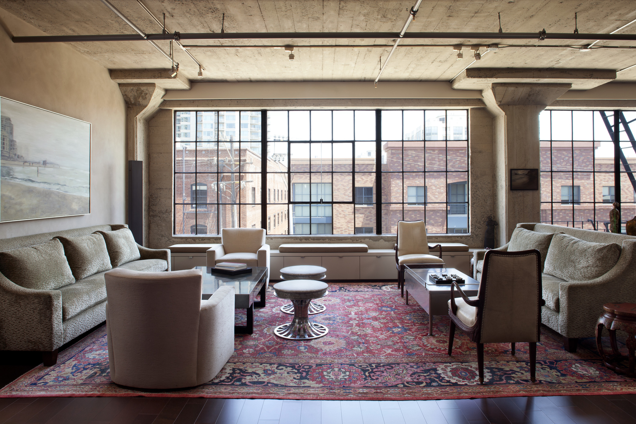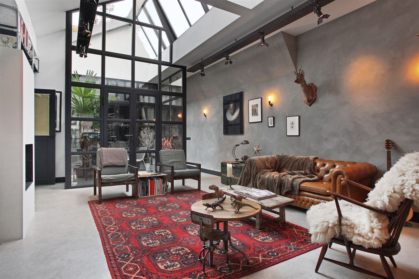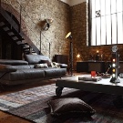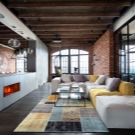 Loft-Stil wird zu monotonen Versionen von dunklen Farbtönen sein.Schwarz, Grau, Terracotta, Dunkelgrün getuftete Modelle sind die richtigen Lösungen für Räume in diesem Stil. Hier können Sie auch Stoff- und Lederbeschichtungen verwenden, die die Urbanität des Raumes positiv betonen.