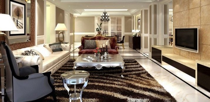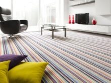 Ein weiteres Merkmal dieser Art von Bodenbelag ist, dass Sie mit Hilfe verschiedener Stillösungen für das Aussehen des Teppichs das Konzept der Gesamtgestaltung des Raumes ändern können. Der Teppich kann den Raum erfolgreich zonieren oder die notwendige Fläche zuordnen, um zu betonen. Darüber hinaus hilft die Wahl einer bestimmten Farbe und Textur, sich an einen bestimmten Stil des Raums anzupassen.